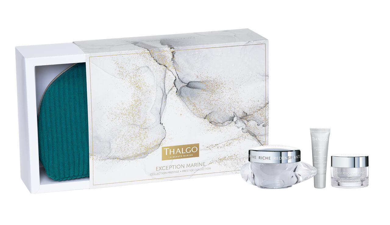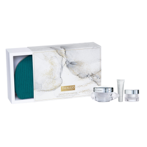 Kolekcja świąteczna Thalgo 2025! W zestawie taniej - oszczędzasz aż 35% + PREZENT! Redensifying Cream 50 ml Krem przywracający gęstość skórze Wyjątkowy krem, który profesjonalnie odbudowuje kontur twarzy oraz restrukturyzuje skórę, zwiększając jej gęstość i wypełniając zmarszczki. Luksusowa i cudownie kremowa konsystencja otula skórę nieskończoną miękkością. Wzbogacony o kompleks Patented Marine Replenishment Complex na bazie hormonów algowych, ekstraktów z figi egipskiej i szarotki alpejskiej ten cudowny krem o zmysłowej nucie zapachowej oferuje kompleksowe działanie anti-ageing. Kontur twarzy jest bardziej wyrazisty, skóra odzyskuje gęstość i jędrność, a widoczność zmarszczek oraz przebarwień zmniejsza się z dnia na dzień. Skóra jest wyraźnie odmłodzona, promienieje blaskiem. Intensive Redensifying Serum 10 ml Intensywne serum przywracające gęstość skórze Niezwykle efektywne serum odmładzające o profesjonalnej konsystencji stanowiącej połączenie świeżości żelu z wygładzającym działaniem kremu. Głęboko wnika w skórę, dostarczając jej wysoko skoncentrowanych składników aktywnych (kompleks Patented Marine Replenishment Complex, alga Chondrus Crispus, lukrecja, krwawnik pospolity, masło Shea, kwas hialuronowy). Wygładza zmarszczki od zewnątrz i wypełnia je od wewnątrz. Z dnia na dzień skór a staję się delikatniejsza, jędrniejsza, wyraźnie odmłodzona. Pomaga zatrzymać czas, przywraca blask skórze, przyczynia się do wewnętrznej regeneracji. Skóra odzyskuje swoją naturalną gęstość i doskonały wygląd, jest bardziej elastyczna, a owal twarz y staje się bardziej regularny. Eyelid Lifting Cream 15 ml Liftingujący krem do powiek Ujędrniający krem 2-w-1 do profesjonalnej pielęgnacji okolic oczu, który błyskawicznie eliminuje obrzęki i cienie pod oczami, stopniowo „otwiera oczy”, wyraźnie wygładza skórę wokół oczu, zmniejszając widoczność zmarszczek, by ujawnić młody i bardziej świetlisty wygląd. Działa na wszystkie widoczne oznaki starzenia się skóry, dając potrójny efekt: liftingujący, zmniejszenie obrzęków i redukcje cienie. Ponadczasowy kompleks Patented Marine Replenishment Complex na bazie hormonów algowych i wyselekcjonowanych molekuł roślinnych stymuluje aktywność fibroblastów, odpowiedzialnych za produkcję włókien kolagenu i elastyny. Zawartość roślinnego kompleksu (kasztanowiec, słodka koniczyna, nostrzyk żółty) wspomaga redukcję obrzęków i cienie pod oczami, a cukier owsiany napina i wygładza skórę. Twoja skóra wokół oczu marzy o tym produkcie. + PREZENT: Christmas Beauty Pouch - aksamitna kosmetyczka w świątecznym klimacie, której kształt inspirowany jest elegancką, półksiężycową formą luksusowych wyrobów skórzanych. To stylowy dodatek, który łączy w sobie szyk, ponadczasową klasę i subtelne nawiązanie do morskich inspiracji. Idealna, by przechować ulubione kosmetyki i podkreślić wyjątkowy charakter prezentu. Wymiary szer. 18.5 cm x gł. 7 cm x wys. 15 cm