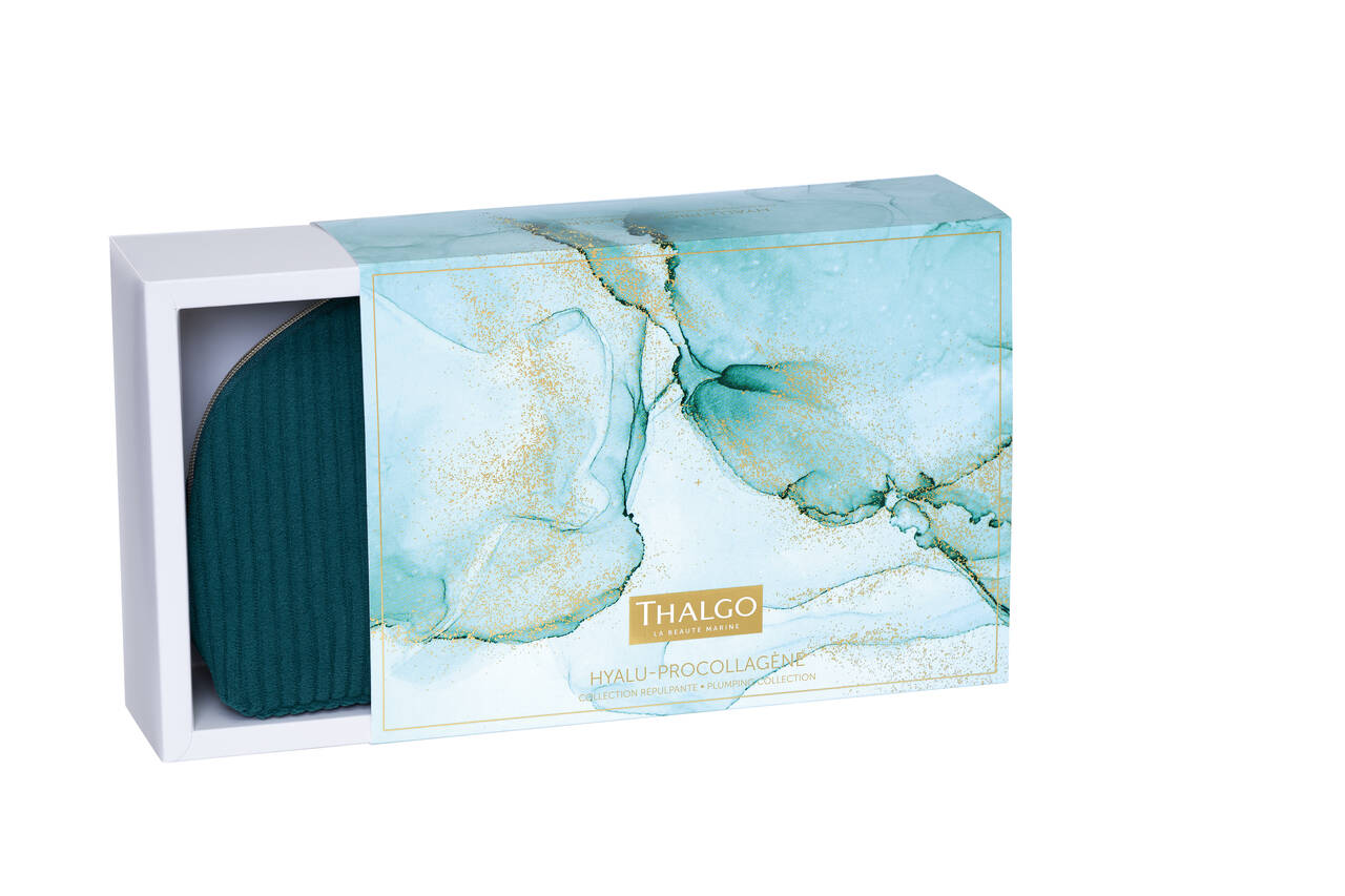 Kolekcja świąteczna Thalgo 2025! W zestawie taniej - oszczędzasz aż 30% + PREZENT! Wrinkle Correcting Rich Cream 50 ml Bogaty przeciwzmarszczkowy krem korygujący zmarszczki Uwodzicielski, odżywczy krem o świeżym, morskim zapachu. Doskonale nawilża, odżywia, wygładza i wypełnia skórę, profesjonalnie sprawia, że staje się bardziej elastyczna i wygląda młodziej. Trzy rodzaje kwasu hialuronowego w połączeniu z morskim prokolagenem stopniowo wypełniają zmarszczki, nawet te utrwalone. Koktajl składników roślinnych dostarcza skórze niezbędne lipidy i zapewnia niebiański komfort i ochronę. Intensive Wrinkle-Correcting Serum 10 ml Intensywne serum korygujące zmarszczki Ultra-aktywne serum, które profesjonalnie koryguje nawet utrwalone zmarszczki już po 14 dniach. Zawiera 2 razy więcej Hyalu-Procollagen Complex, niż krem. Natychmiast ujędrnia skórę, widocznie wygładza zmarszczki, stopniowo wypełniając nawet te utrwalone. Składnik retinol-like, uzyskany z ekologicznych nasion lucerny, delikatnie usuwa martwe komórki naskórka, wykazuje silne działanie odmładzające: na powierzchni stymuluje odbudowę naskórka i syntezę kwasu hialuronowego, w głębszych warstwach skóry pobudza syntezę kolagenu typu I oraz hamuje działanie kolagenazy. Wrinkle Correcting Eye Pro Patches 8 sachets Korygujące przeciwzmarszczkowe płatki pod oczy Odświeżające płatki z profesjonalnym efektem wypełnienia, nasączone aktywnym koncentratem zostały wycięte z ultra miękkiego materiału, który idealnie przylega do okolicy oczu, dla maksymalnego komfortu. + PREZENT: Christmas Beauty Pouch - aksamitna kosmetyczka w świątecznym klimacie, której kształt inspirowany jest elegancką, półksiężycową formą luksusowych wyrobów skórzanych. To stylowy dodatek, który łączy w sobie szyk, ponadczasową klasę i subtelne nawiązanie do morskich inspiracji. Idealna, by przechować ulubione kosmetyki i podkreślić wyjątkowy charakter prezentu. Wymiary szer. 18.5 cm x gł. 7 cm x wys. 15 cm
